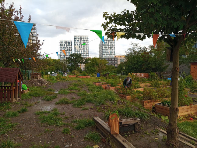 Zahrádka je hlavně komunitní – tvoří ji parta lidí z okolí. Postupně tak vzniká prostor pro setkávání, pěstování rostlin i vztahů, místo pro radostnou hru i odpočinek.